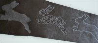 Prägen von individuellen Motiven in Leder. Einsatzmöglichkeit Shopdesign, Lederwaren, Flächenbespannung.